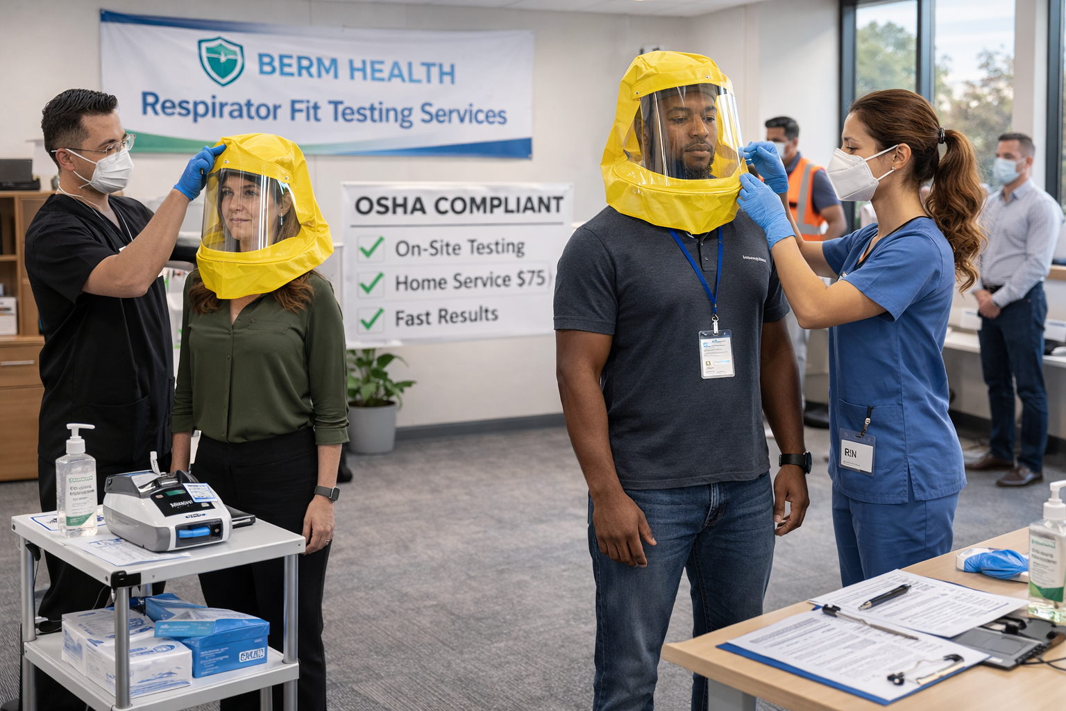 Our OSHA-compliant qualitative respirator fit testing ensures your employees are properly protected, and workplace safety standards are met. Tests are performed by a trained healthcare professional following OSHA standards.